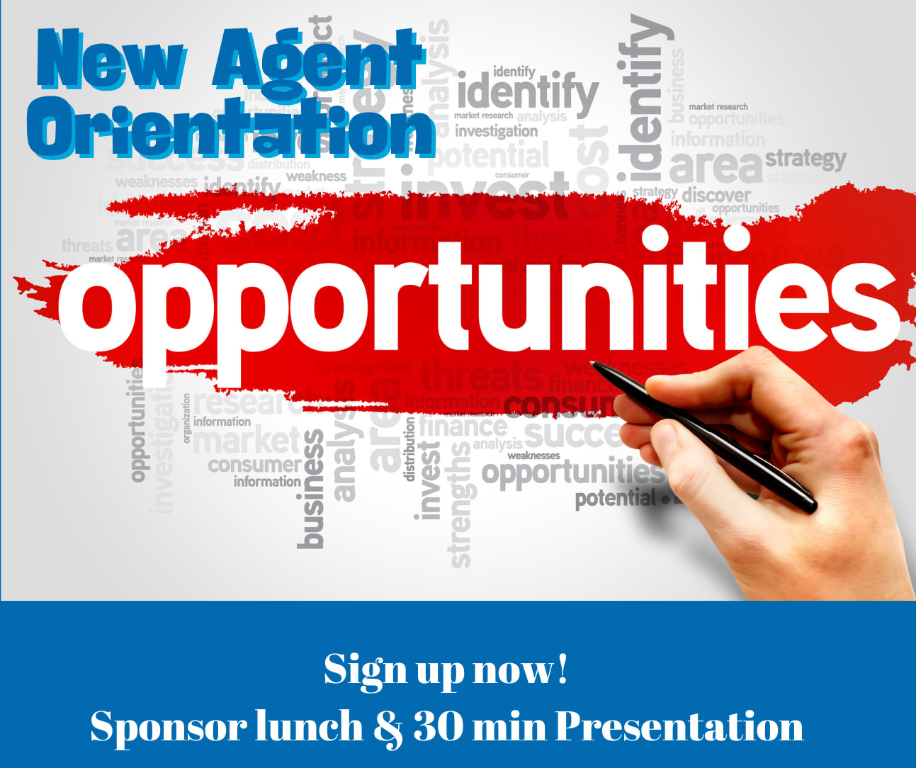 We are holding New Agent Orientation monthly starting Mid 2024 and going forward, as a one-day event that will be held in our office from 9:30 am to 4:00 pm. This would be a perfect opportunity for our affiliates to do a 30-minute presentation and lunch from 12:30-1pm.