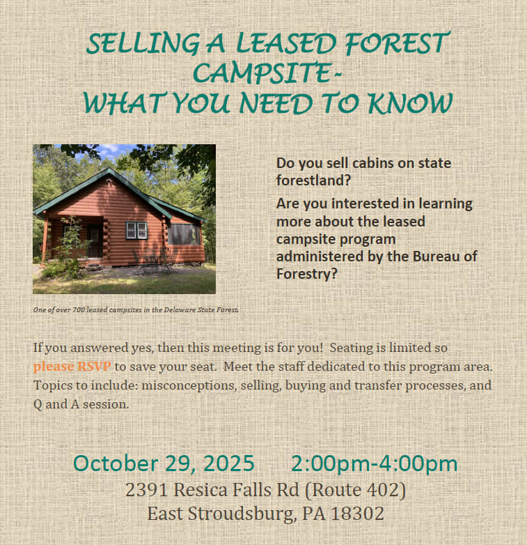 DCNR BUREAU OF FORESTRY-DELAWARE FOREST DISTRICT will be hosting this session at their location!