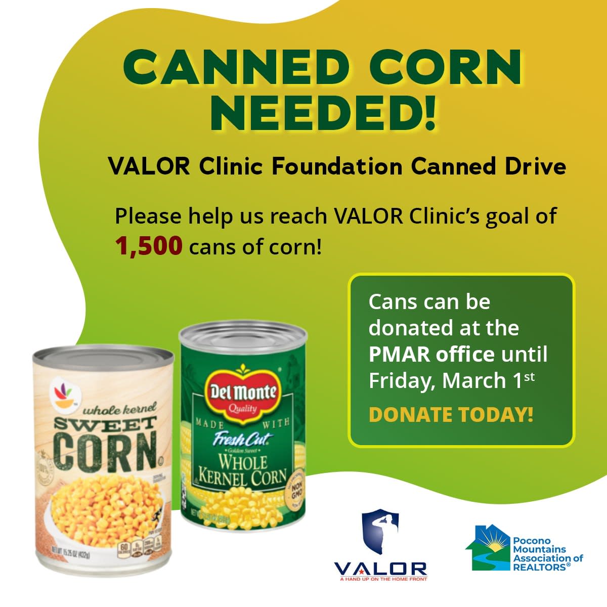 We are thrilled to announce that PMAR will be participating in the VALOR Clinic Foundation’s Canned Corn Drive.